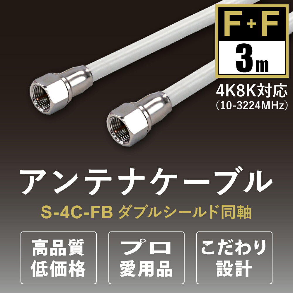 アンテナケーブル 同軸ケーブル 3m 4K8K対応 S-4C-FB 地デジ 地上デジタル BS CS TV テレビ F+F型 メール便送料無料 ycm3
