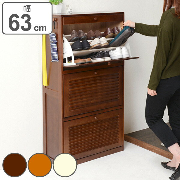 下駄箱 靴箱 木製 シューズラック 3段 ( 送料無料 シューズボックス 玄関収納 靴 フラップ 収納 引き出し フック 高さ調節 扉付き スリム シューズ )