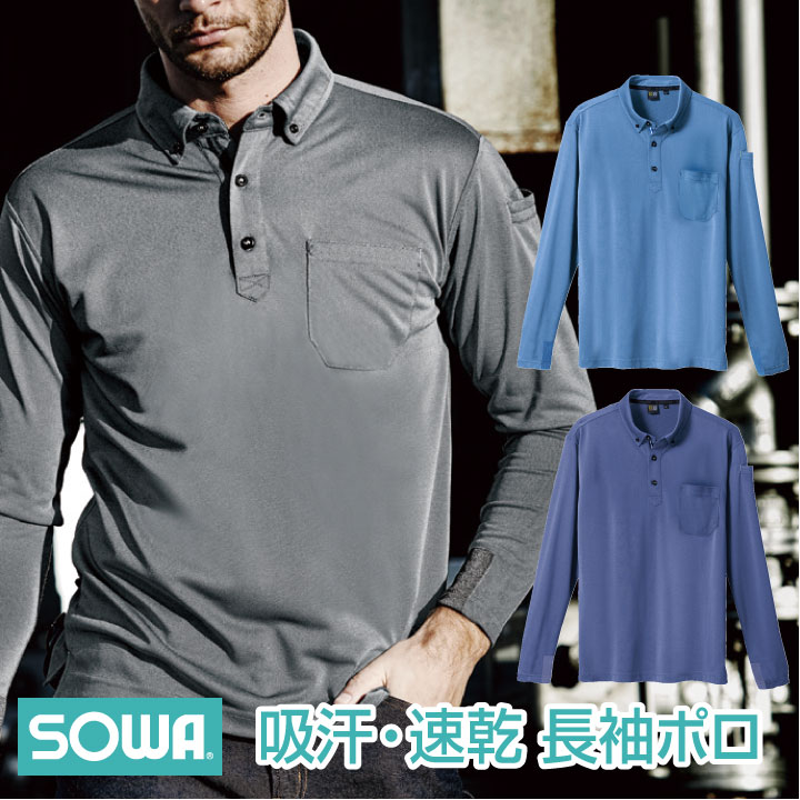 長袖ポロシャツ(胸ポケット付き) シャンブレー調 ボタンダウン メンズ 作業服 作業着 作業シャツ sw-7045-50