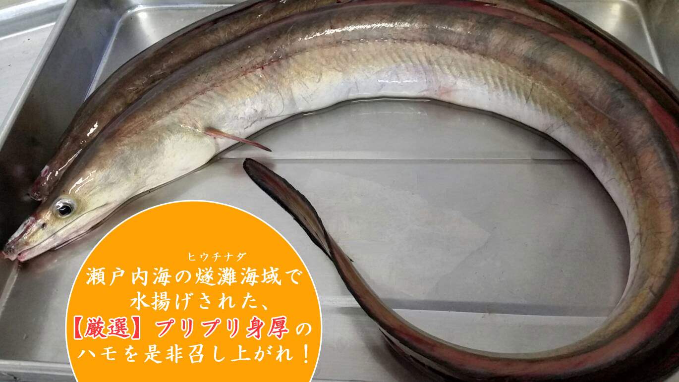 瀬戸内海の燧灘(ヒウチナダ)海域で水揚げされたハモは、老舗料亭に出荷している高級ハモです。