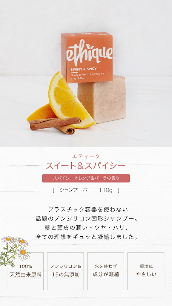 【クーポン利用で20%OFF】【公式】エティーク|シャンプー バー スイート&スパイシー 110g オーガニック ノンシリコン 美容室専売 サロン 品質 スカルプシャンプー ボタニカルシャンプー アロマシャンプー 女性 メンズ 頭皮 臭い 匂い 固形 石鹸 固形シャンプー