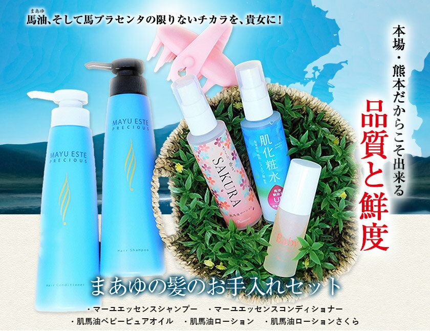 名称 まあゆの髪のお手入れセット 商品について 熊本の良質な馬油を配合、理容のプロにも使用いただいている、髪と地肌にやさしいシャンプー・コンディショナーと、ヘアケアにもオススメの馬油100%オイル、ミストローションをセットでお届け。