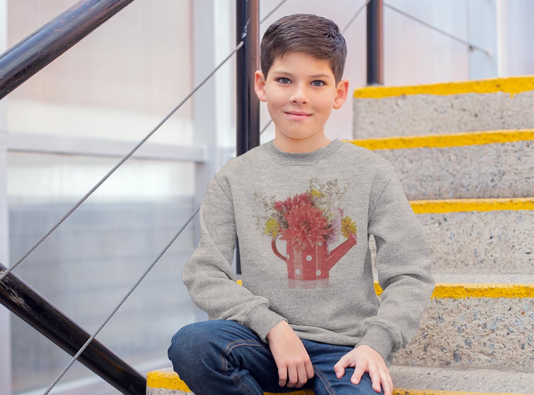 トレーナー キッズ 子供 長袖 ホワイト グレー ブラック デザイン 110 130 150 sweatshirt trainer 白 黒 灰色 裏パイル スウェット スエット 000954 花 じょうろ