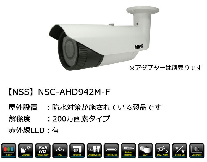 防犯カメラ 屋外 NSS NSC-AHD942M-F 200万画素 業務用 監視カメラ 暗視カメラ AHD 防水 IP67 暗視 アパート マンション オフィス 店舗 会社 【送料無料】