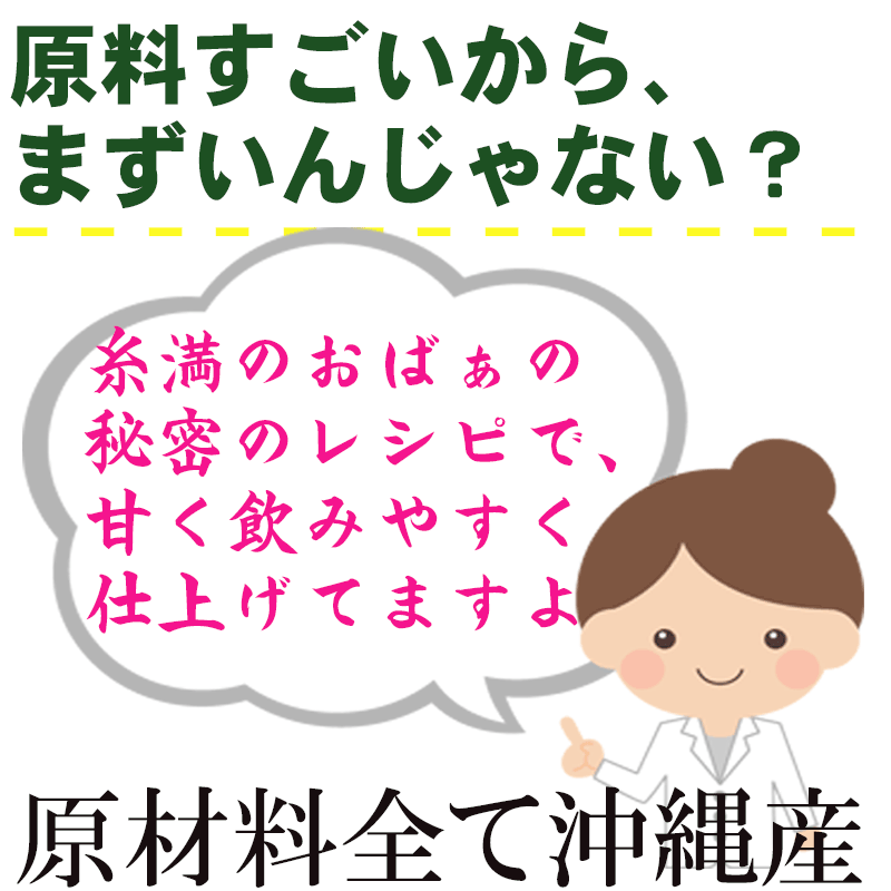 昔ながらの手作り伝統製法を糸満のおばぁから習い、1年間じっくり発酵させておいしく飲みやすく作りました。