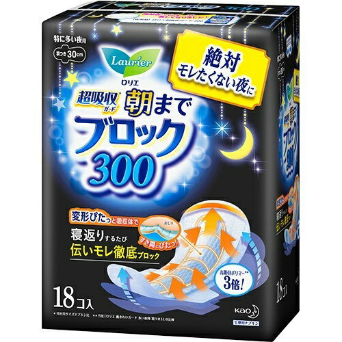 【送料込・まとめ買い×12個セット】花王 ロリエ 超吸収ガード 朝までブロック 30cm 羽つき 18個入