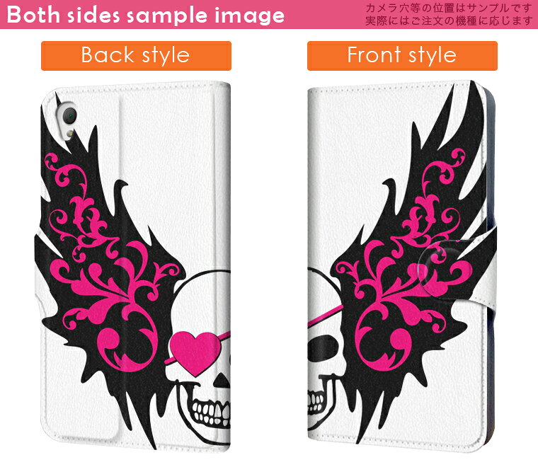 DM-01H Disney Mobile ディズニーモバイル dm01h docomo ドコモ スマホ カバー 手帳型 カバー レザー ケース 手帳タイプ フリップ ダイアリー 二つ折り 革 ドクロ 骸骨 羽根 ピンク クール 007629
