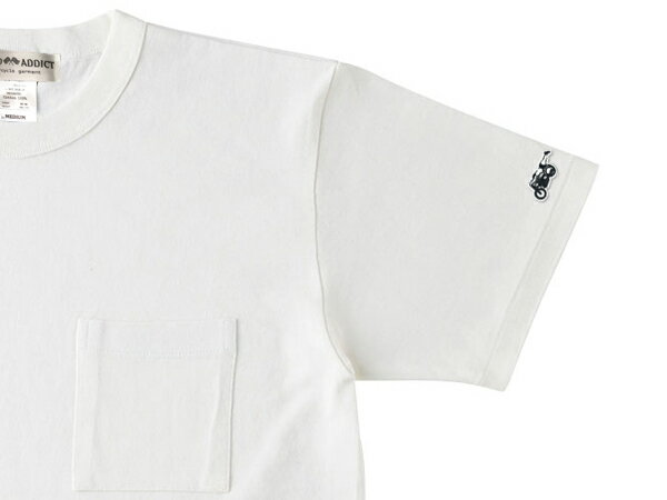 袖スピードアディクト POCKET T-shirt(袖SPEED ADDICTポケットTシャツ)NATURAL 白生成りアイボリーポケt刺繍ワッペンワンポイントトライアンフbsanortonducatimv agstaピアジオベスパlambrettaroyal enfield英国車マン島ttレースmotogp