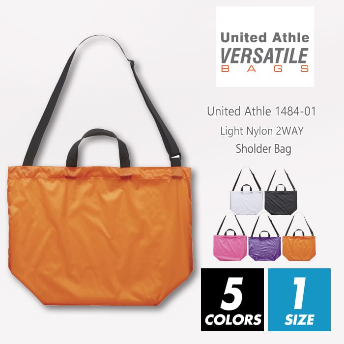 ショルダーバッグ ライトナイロン 2WAY 【メール便可 1着290円】united athle ユナイテッドアスレ 1484-01 f フリーサイズ カバン トート ショルダー カラー 学生 主婦 エコバッグ 企業 サンプル 袋 ナチュラル ブラック ルームウエア 部屋着