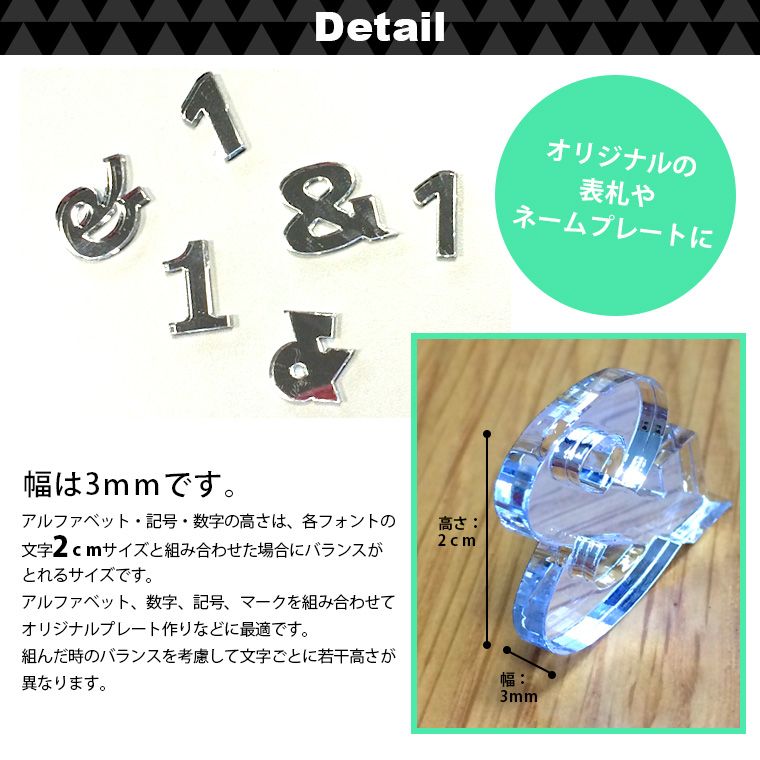 2cm 厚さ約3mm 切り抜き文字 数字・記号 ミラーアクリル製 アンシャンテラボ / 切り文字 切文字 パーツ ローマ字 ハンドメイド クラフト DIY 表札 ネームプレート 看板 ウェルカムボード ウエディング ウェルカムボード【ゆうパケット対応】