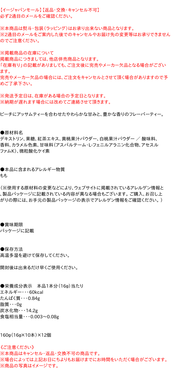 [関連キーワード:食品 ピーチ アッサムティー 水 インスタント お湯 業務用]AGFpro ピーチティー 1L用 16g×10 はコチラ >>【イージャパンショッピングモール】内のみのお買い物は、送料一律でどれだけ買っても同梱する事が出来ます。