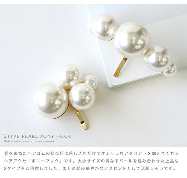 keyword :ポニーフック パール 大人っぽい ヘアアクセサリー■□ Item information - 商品説明 - □■ 髪を束ねたヘアゴムの結び目に差し込むだけでオシャレなアクセントを加えてくれる ヘアアクセ「ポニーフック」です。
